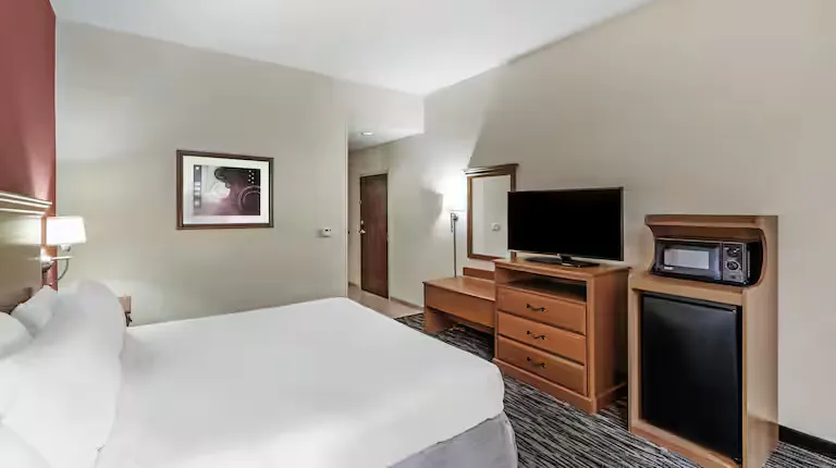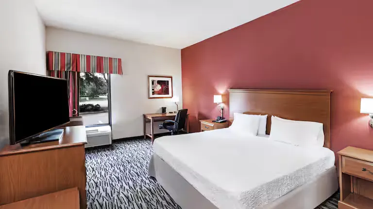 Hearing accessible - Comfortable and well-appointed, this room features one king bed with premium linens, high-speed Wi-Fi, a flat-screen TV, and a work desk. Includes a mini-fridge, microwave, coffee maker, and a modern private bathroom—ideal for business or leisure stays.